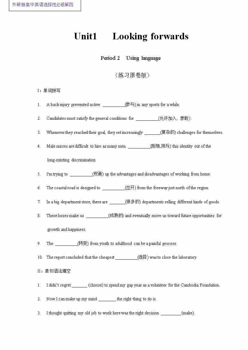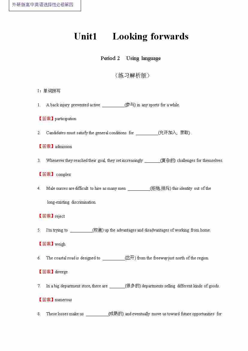 Unit1Lookingforwards课后练习外研版选择性必修第四册