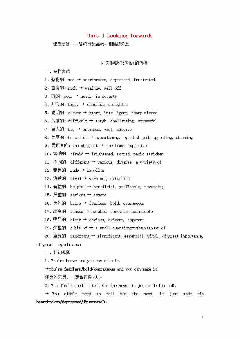 Unit1Lookingforwards课后练习含解析外研版选择性必修第四册