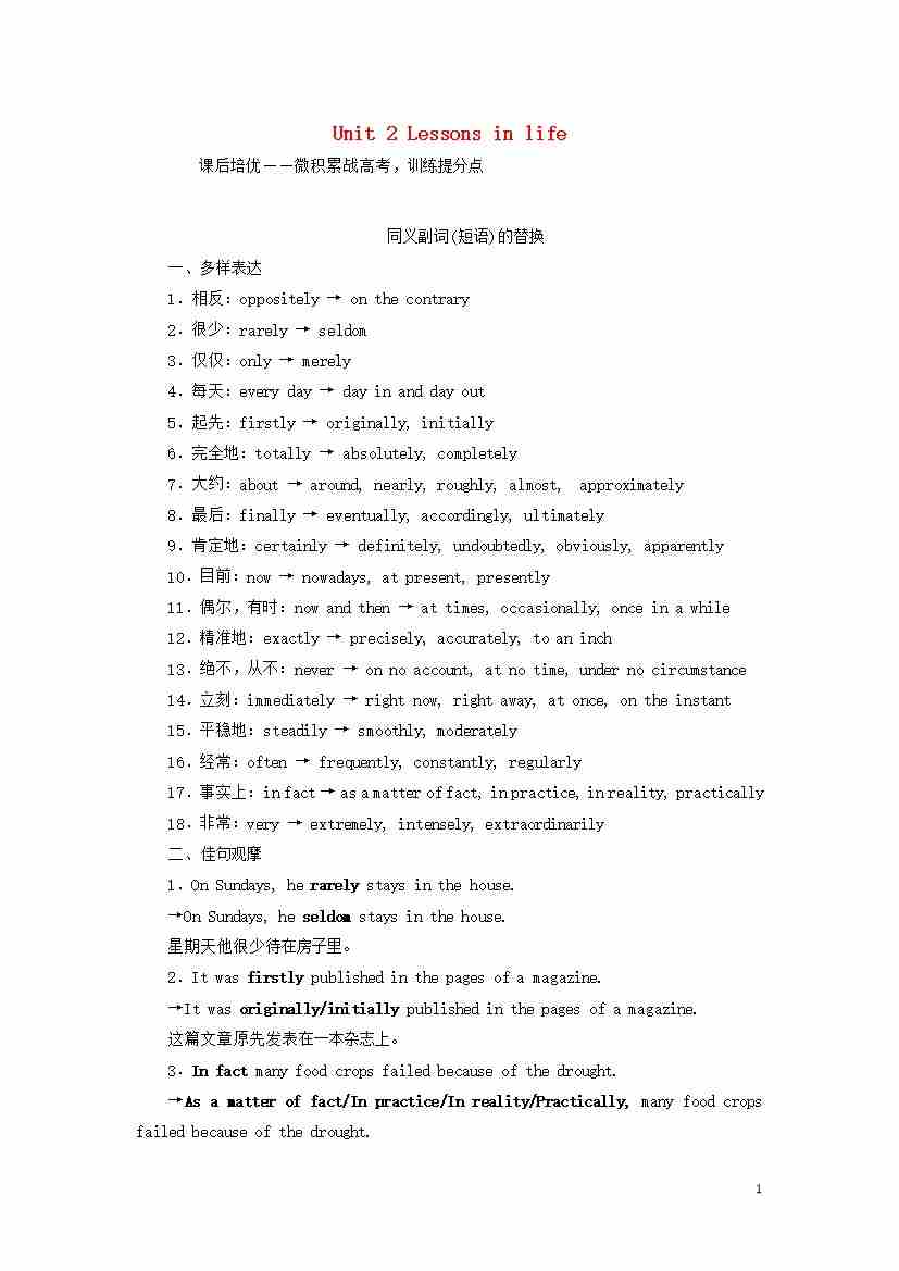 Unit2Lessonsinlife课后练习外研版选择性必修第四册