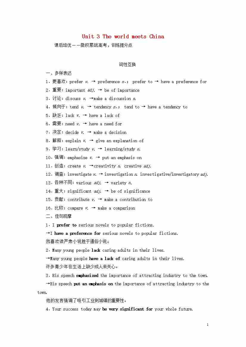 Unit3TheworldmeetsChina课后练习外研版选择性必修第四册