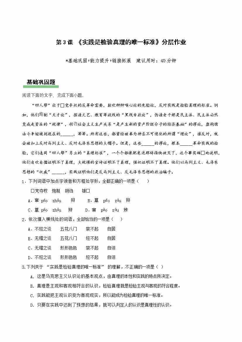 3 《实践是检验真理的唯一标准》(分层作业)(原卷版)