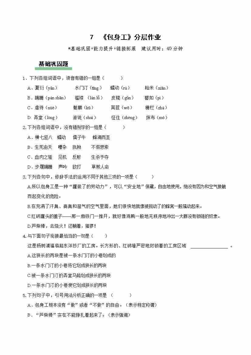 7《包身工》(分层作业)(原卷版)