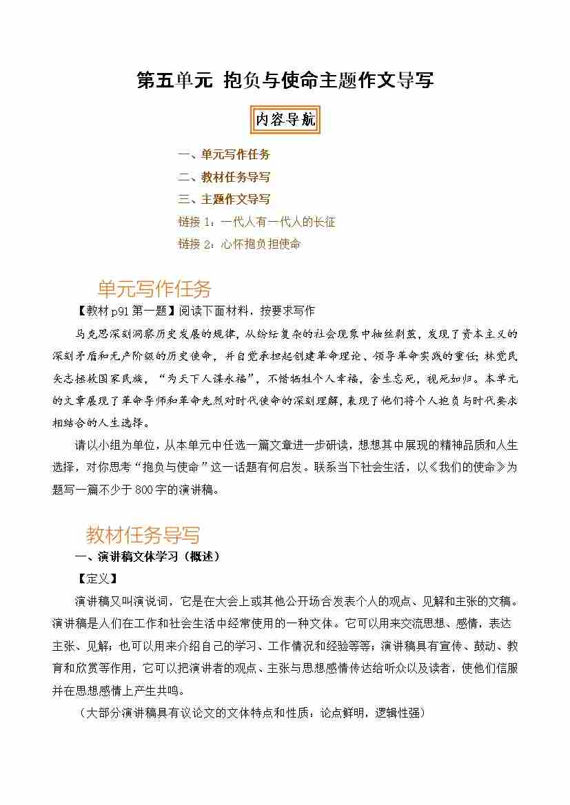 专题01:“高考演讲稿发言稿”单元写作指导-(统编版必修下册)