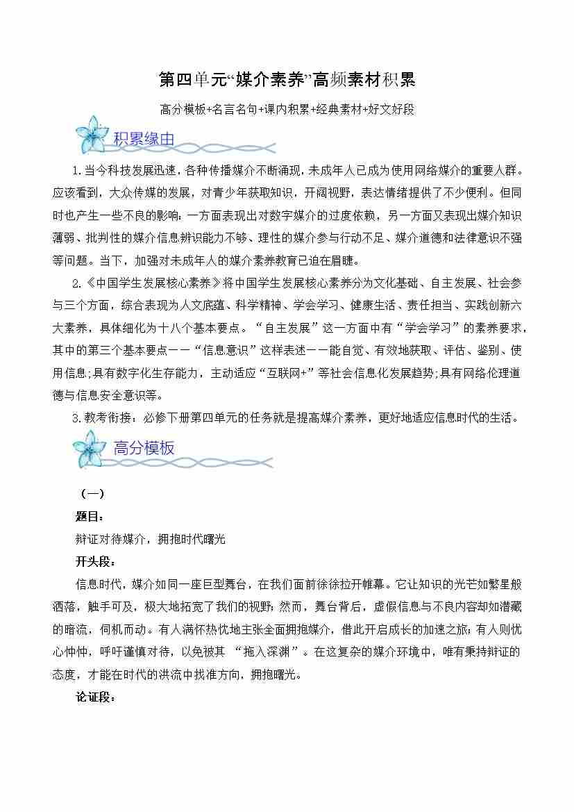 专题03:媒介素养高频素材积累-(同步作文课)(统编版必修下册)