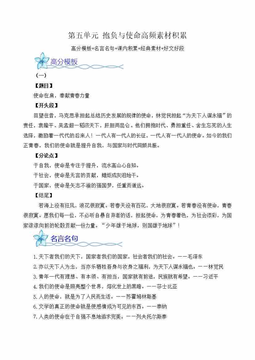 专题03:抱负与使命高频素材积累-(统编版必修下册)