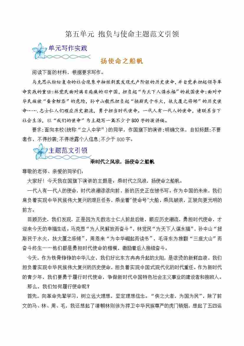 专题04:抱负与使命主题范文引领-(统编版必修下册)