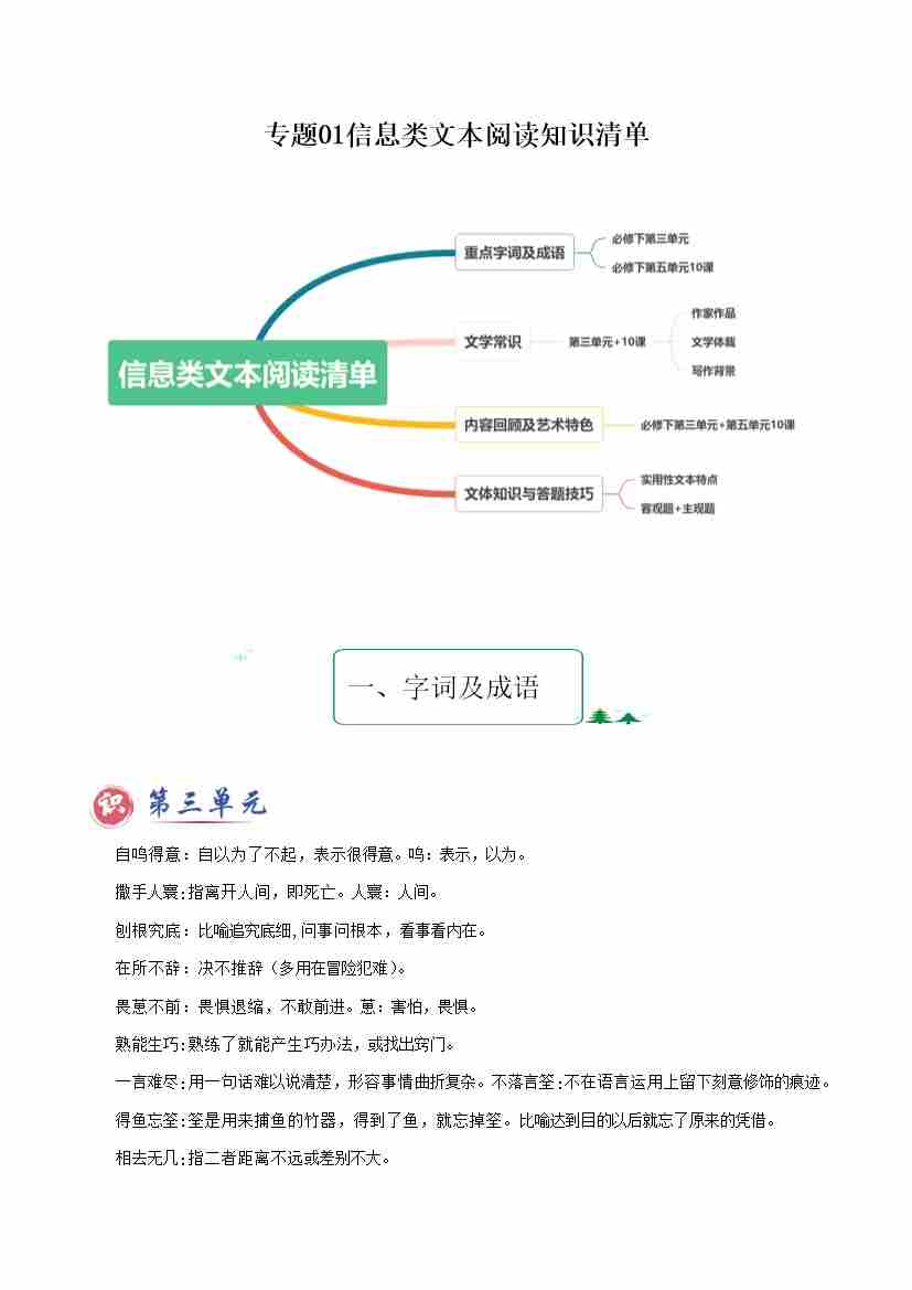专题01 信息类文本阅读(知识清单)-2024-2025学年高一语文下学期期末考点大串讲(统编版必修下册)