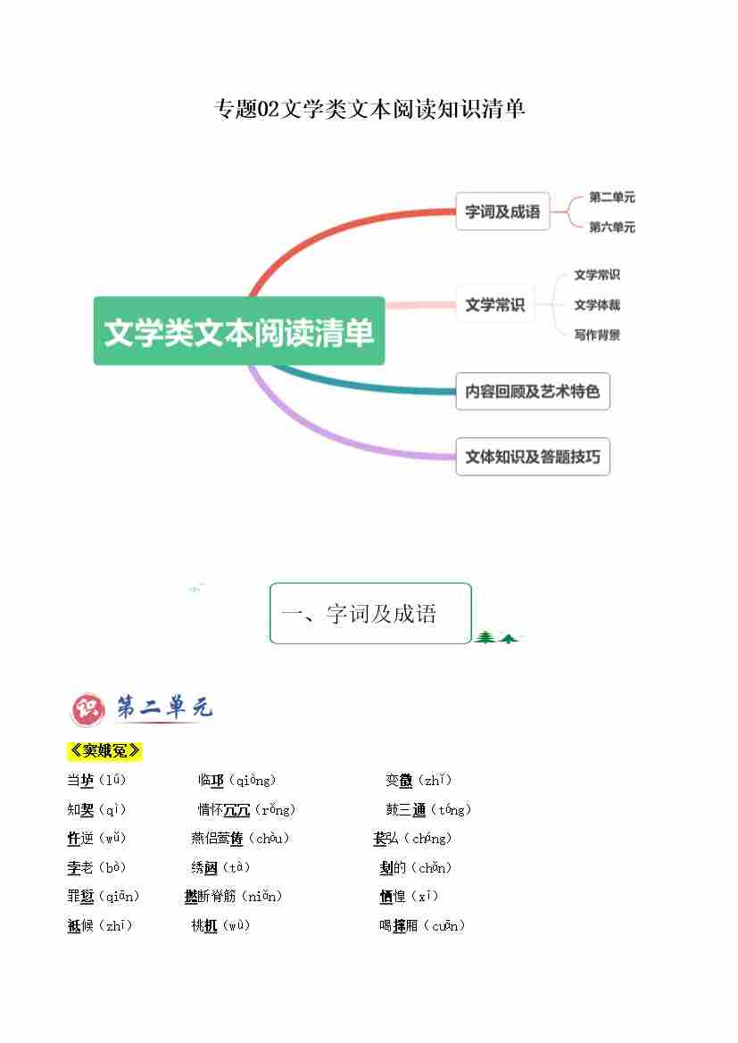 专题02 文学类文本阅读(知识清单)-2024-2025学年高一语文下学期期末考点大串讲(统编版必修下册)