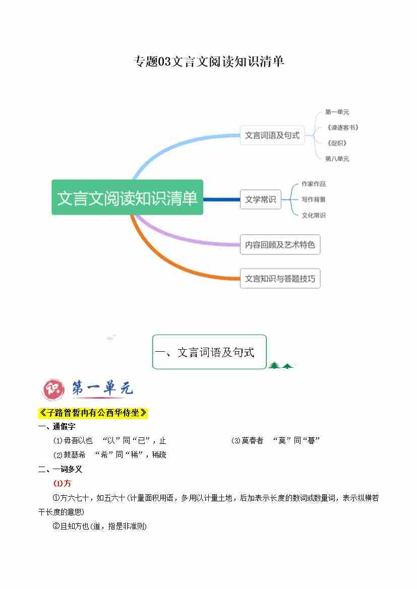 专题03 文言文阅读(知识清单)-2024-2025学年高一语文下学期期末考点大串讲(统编版必修下册)