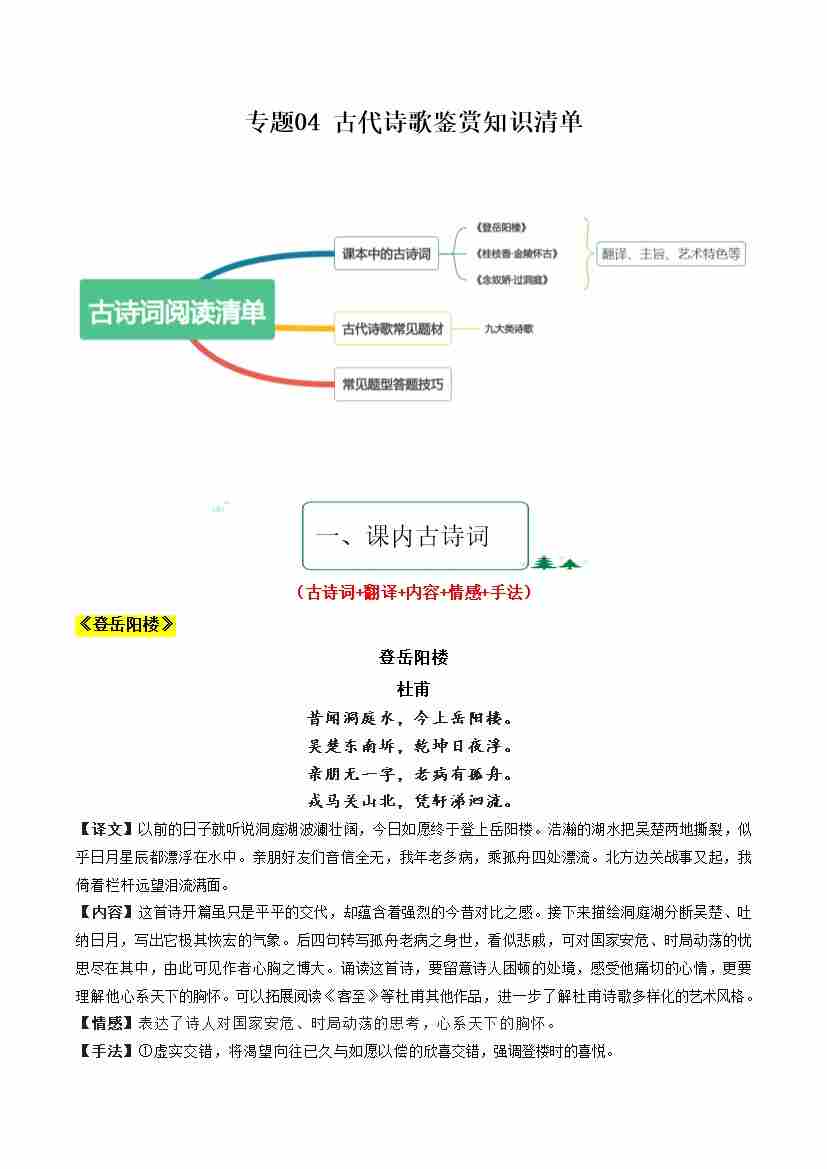 专题04 古代诗歌鉴赏(知识清单)-2024-2025学年高一语文下学期期末考点大串讲(统编版必修下册)