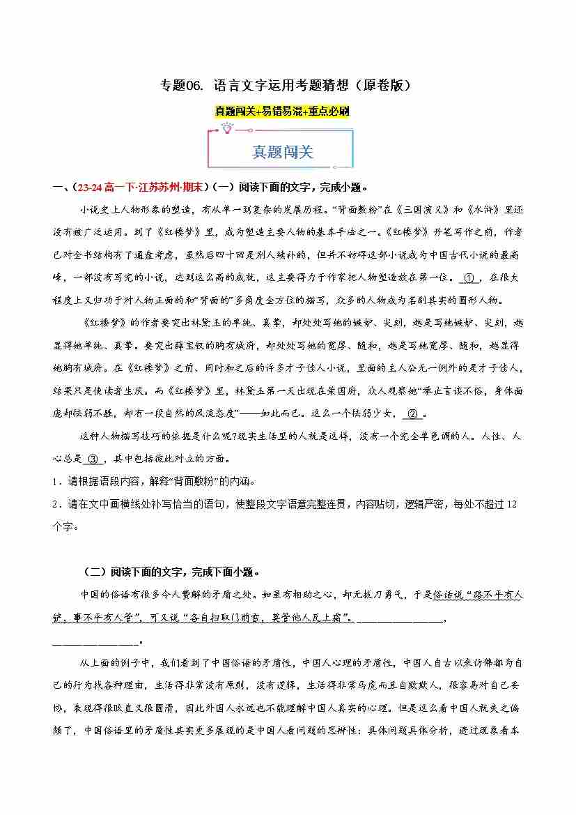 专题06 语言文字运用(考题猜想)(学生版)1
