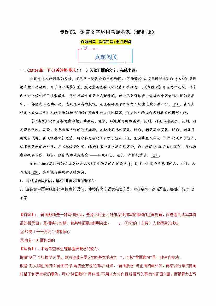 专题06 语言文字运用(考题猜想)(教师版)1