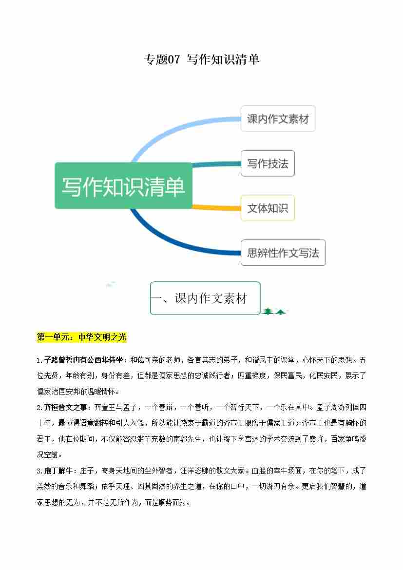 专题07 写作(知识清单)-2024-2025学年高一语文下学期期末考点大串讲(统编版必修下册)