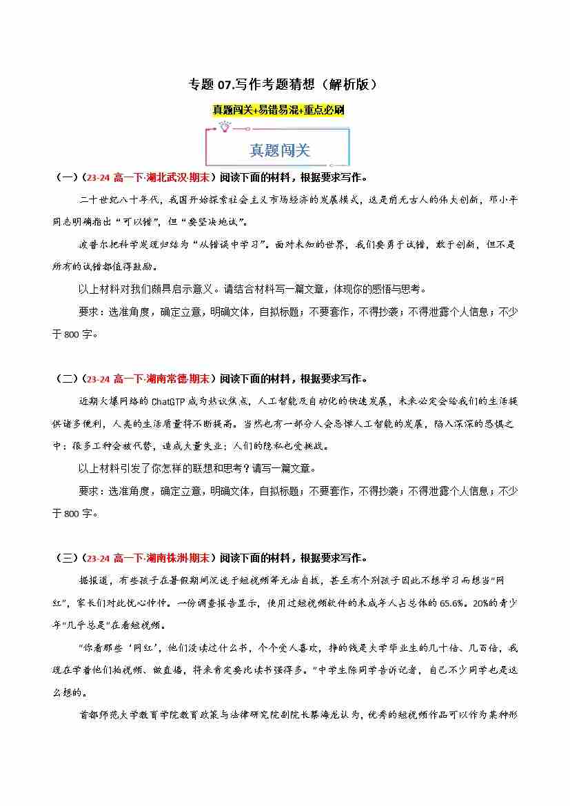 专题07 写作(考题猜想)(学生版)1