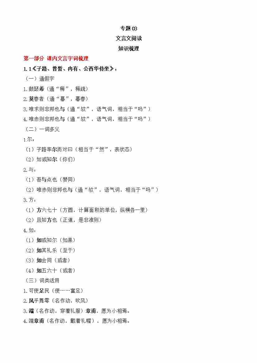 期中专题03 文言文阅读(知识梳理)-高一语文下学期期中期(统编版必修下册)