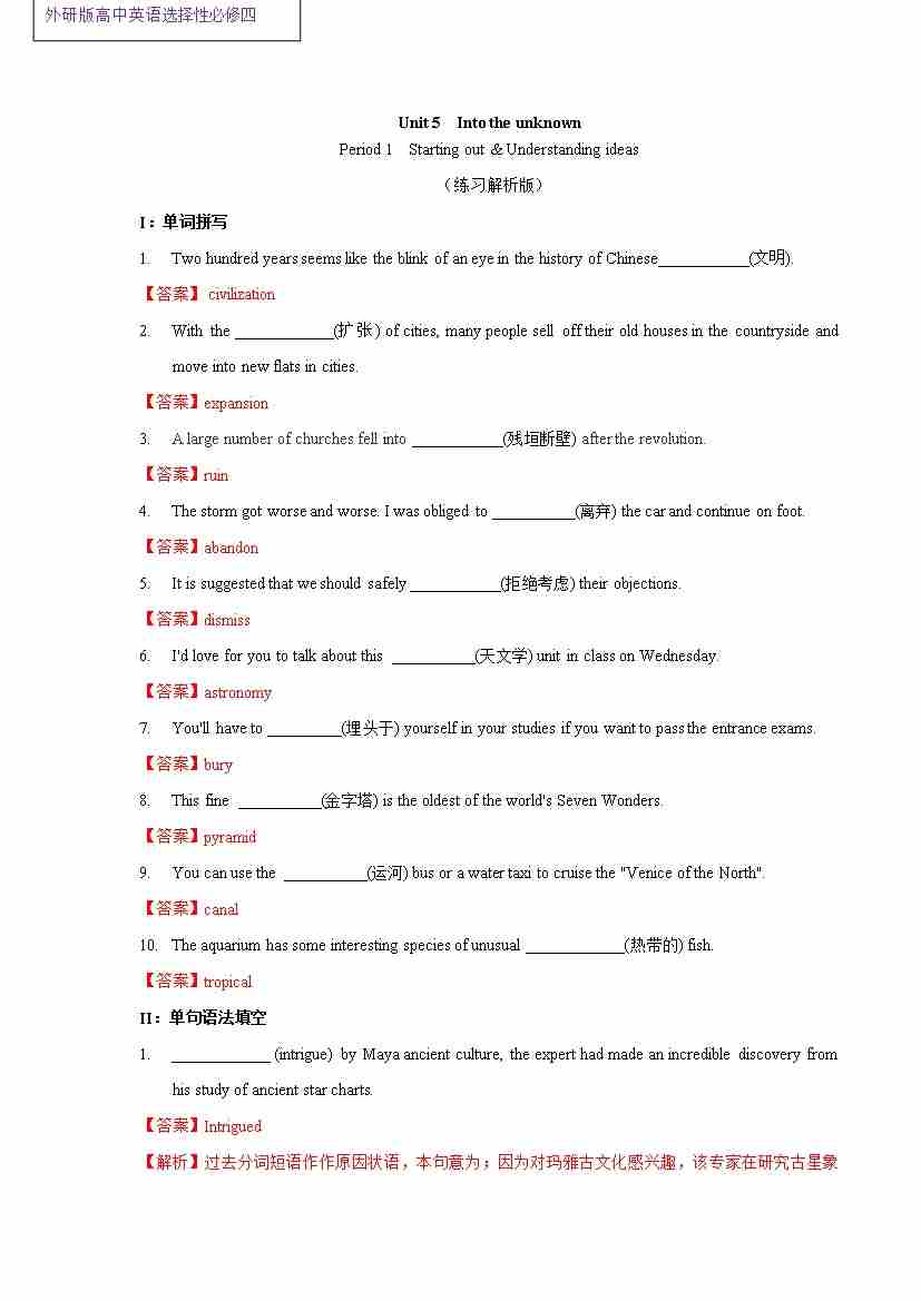 Unit 5 Into the unknown Period 1 练习解析版-(外研版选择性必修第四册)