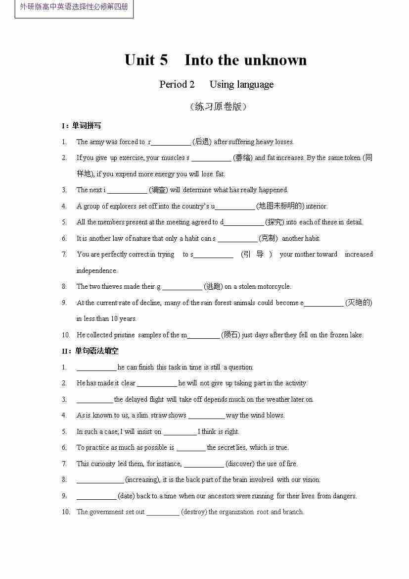 Unit 5 Into the unknown Period 2 练习原卷版-(外研版选择性必修第四册)