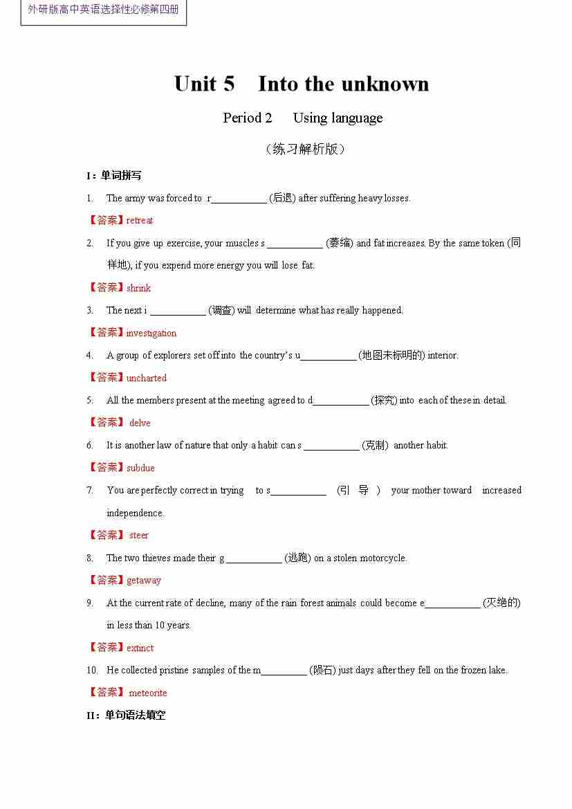 Unit 5 Into the unknown Period 2 练习解析版-(外研版选择性必修第四册)