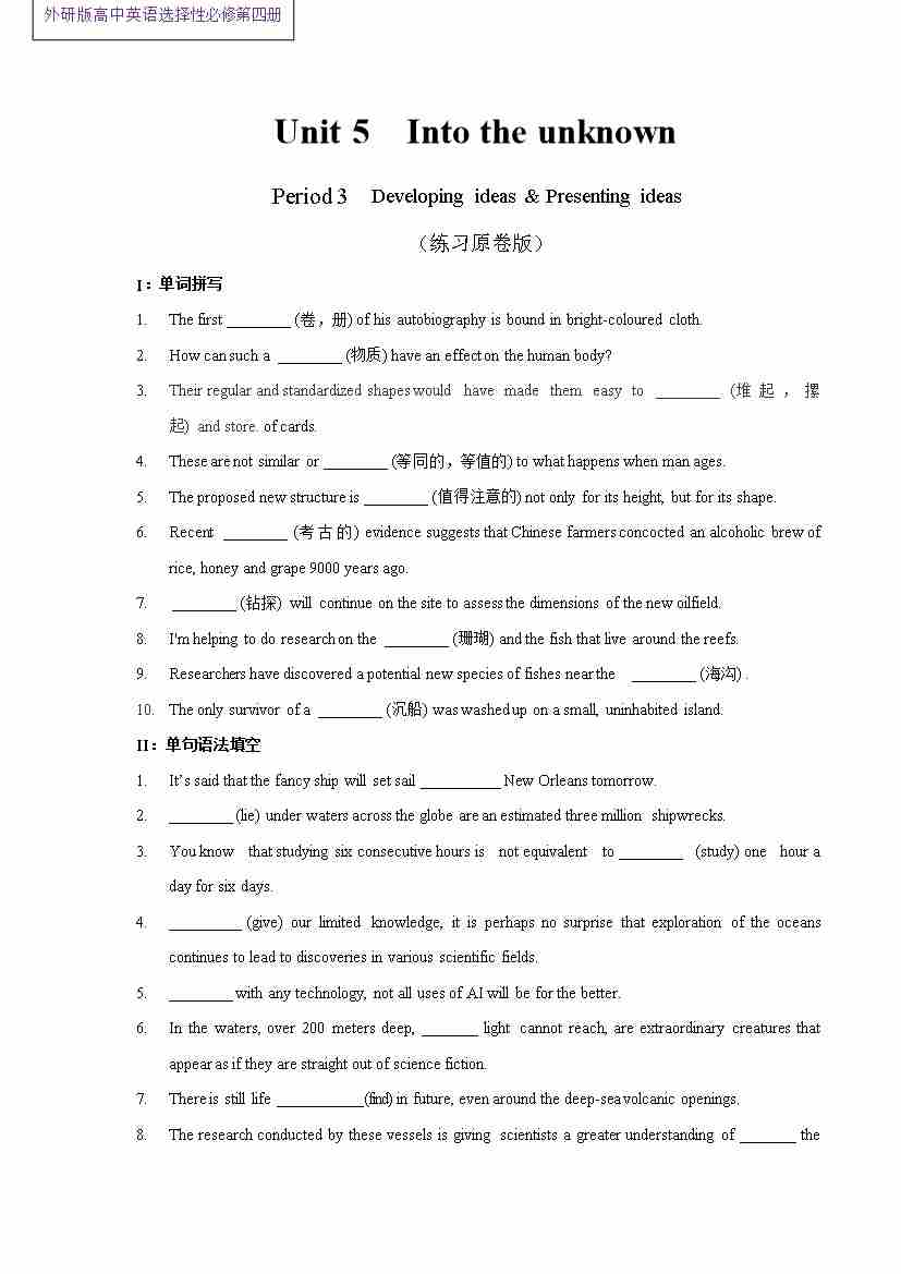 Unit 5 Into the unknown Period 3 练习解析版-(外研版选择性必修第四册)