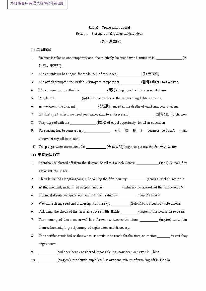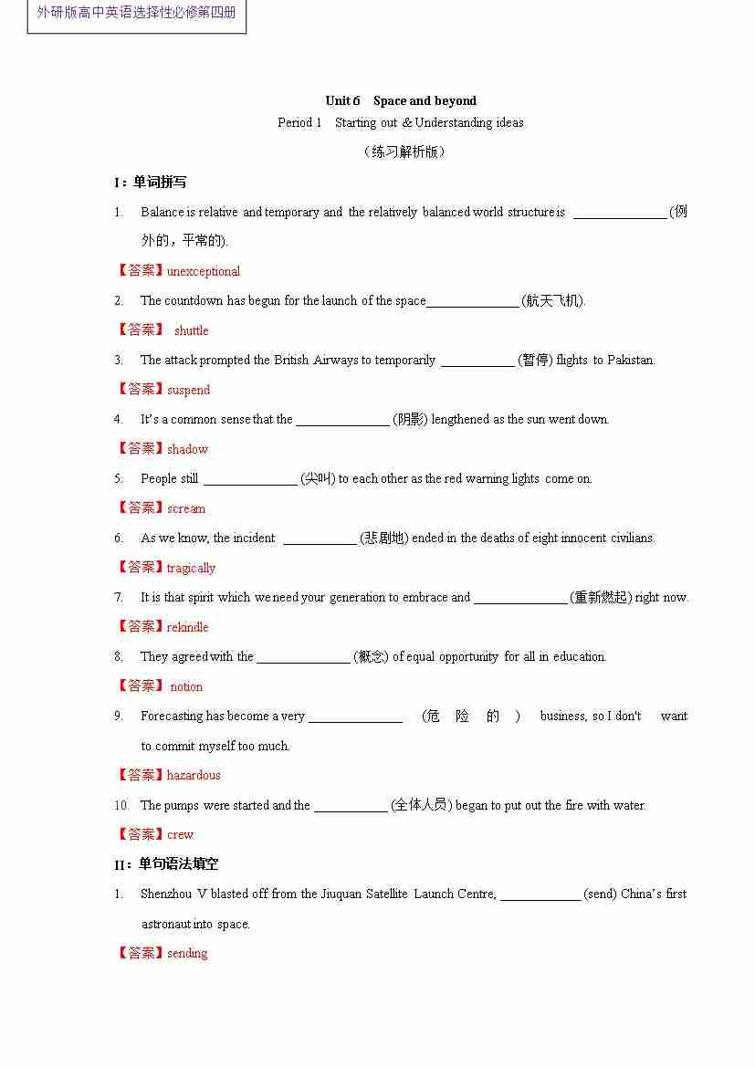 Unit 6 Space and beyond Peroid 1 练习解析版-(外研版选择性必修第四册)