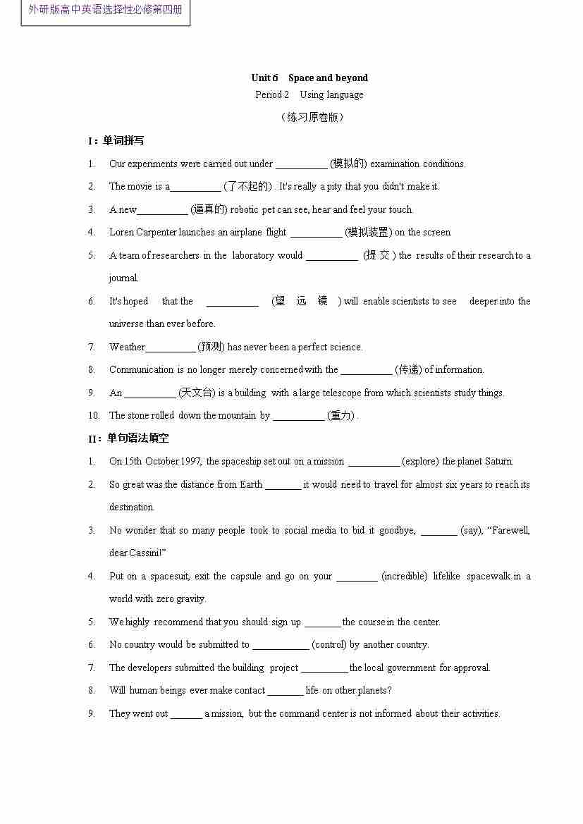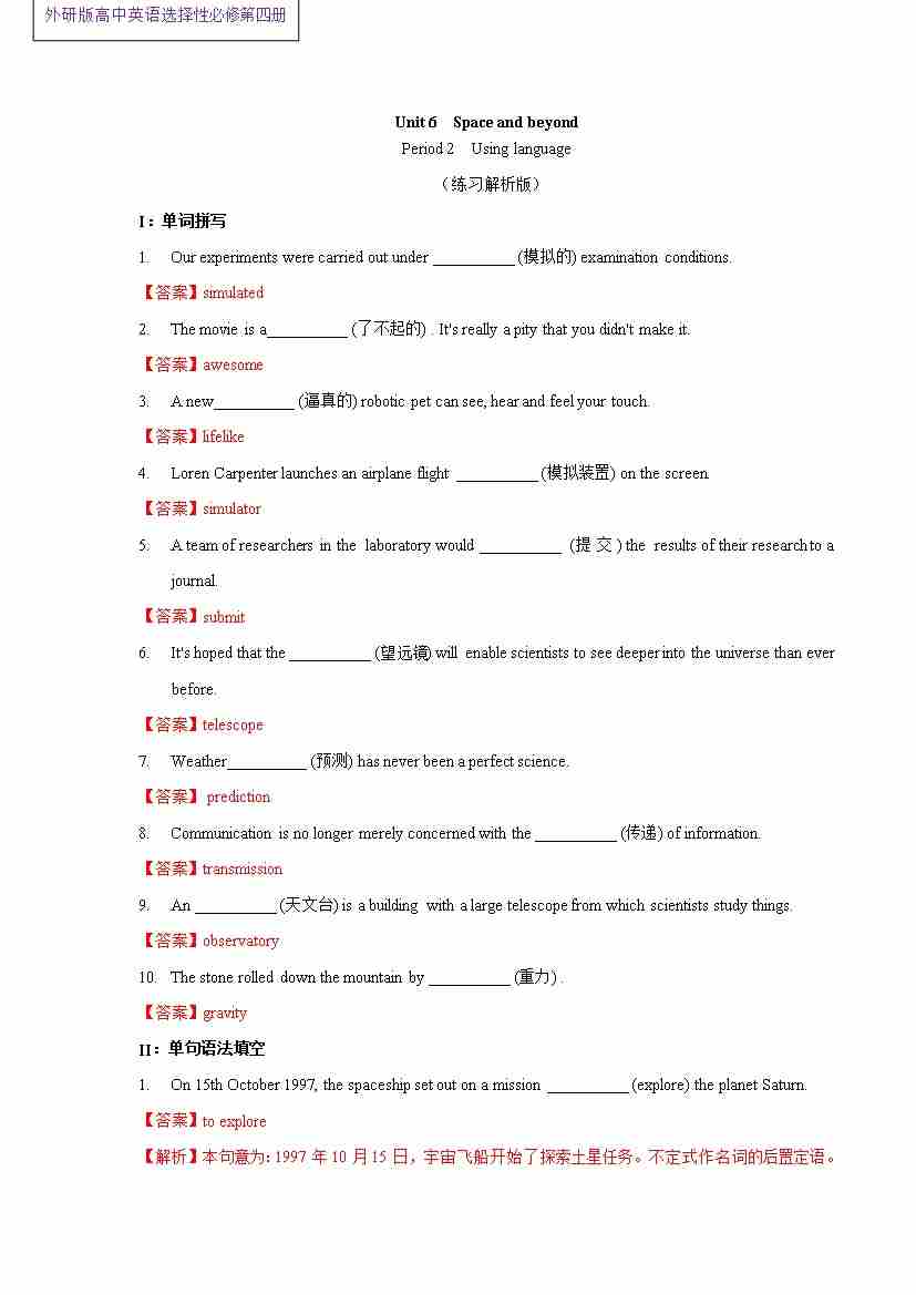 Unit 6 Space and beyond Peroid 2 练习解析版-(外研版选择性必修第四册)