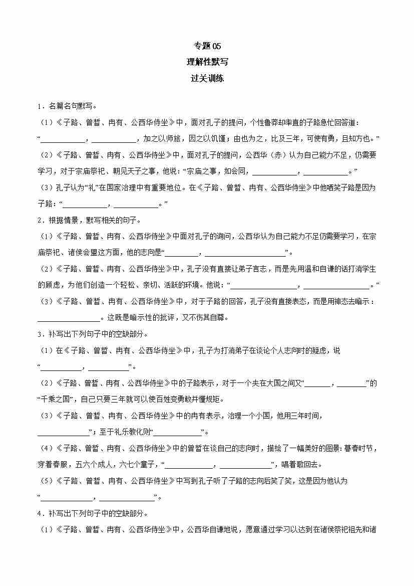期中专题05 理解性默写(过关训练)-高一语文下学期期中期(统编版必修下册)学生版