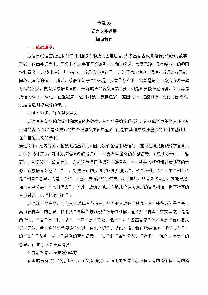期中专题06 语言文字运用(知识梳理)-高一语文下学期期中期(统编版必修下册)