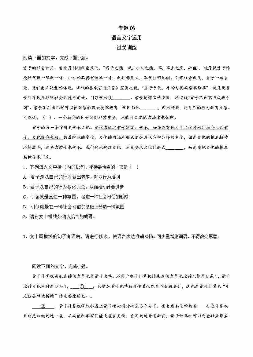期中专题06 语言文字运用(过关训练)-高一语文下学期期中期(统编版必修下册)学生版