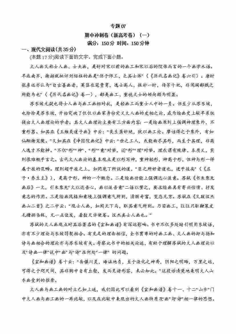 期中专题07 期中冲刺卷(新高考卷)(一)-高一语文下学期期中期(统编版必修下册)学生版
