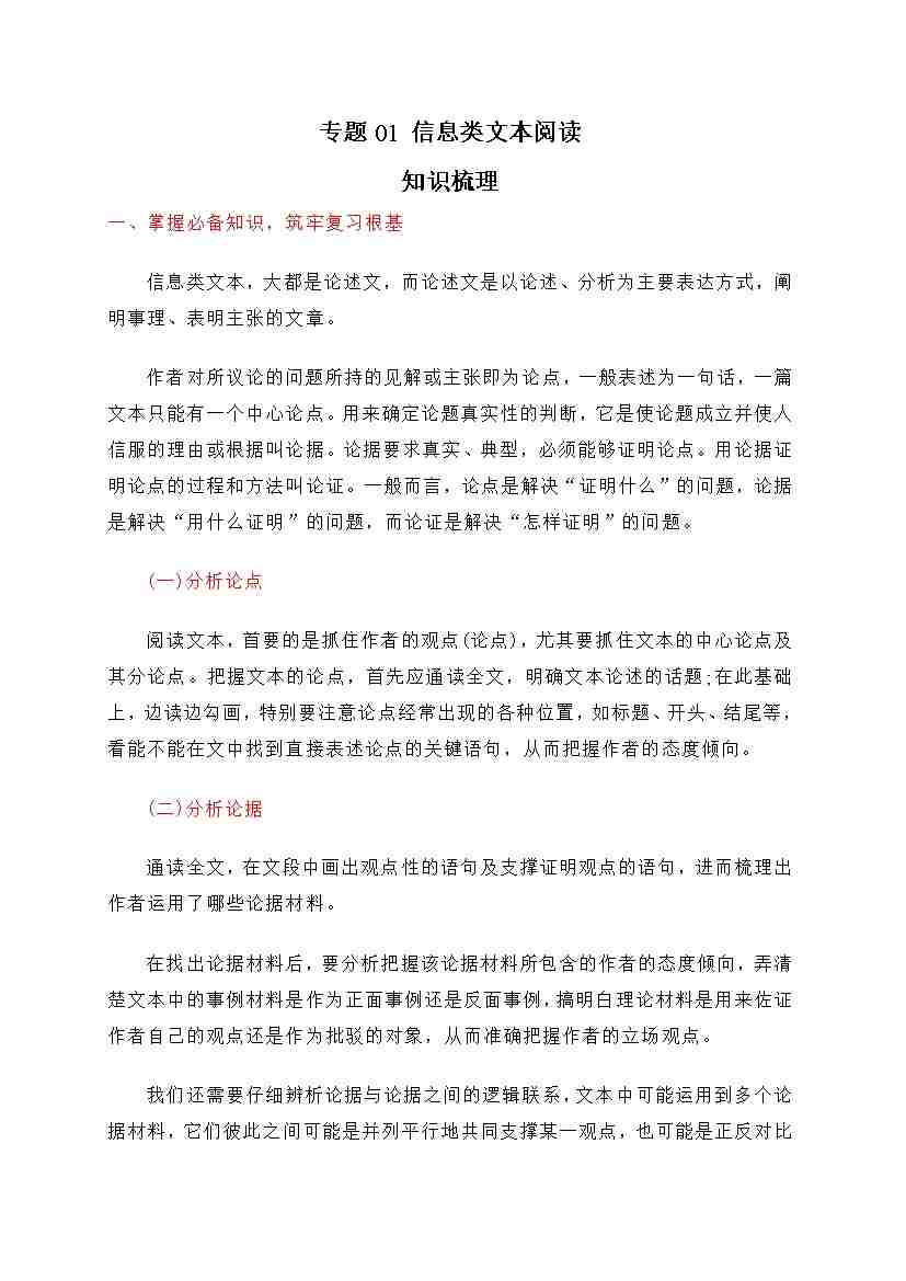 期末专题01 信息类文本阅读(知识梳理)-高一语文下学期期中期(统编版必修下册)