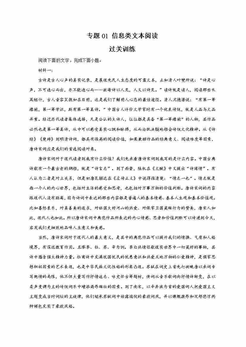 期末专题01 信息类文本阅读(过关训练)-高一语文下学期期中期(统编版必修下册)教师版