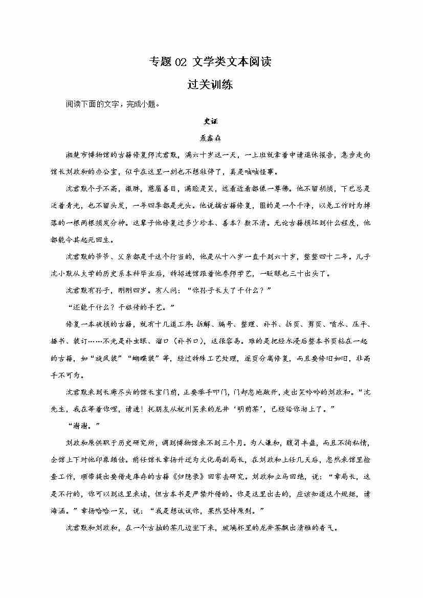 期末专题02 文学类文本阅读(过关训练)-高一语文下学期期中期(统编版必修下册)教师版