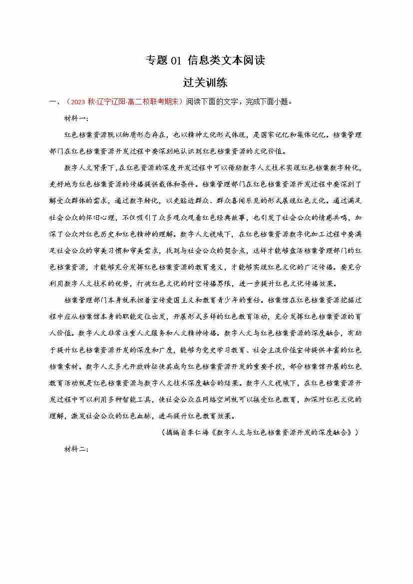 期中专题01 信息类文本阅读(过关训练)-高一语文下学期期中期(统编版必修下册)教师版