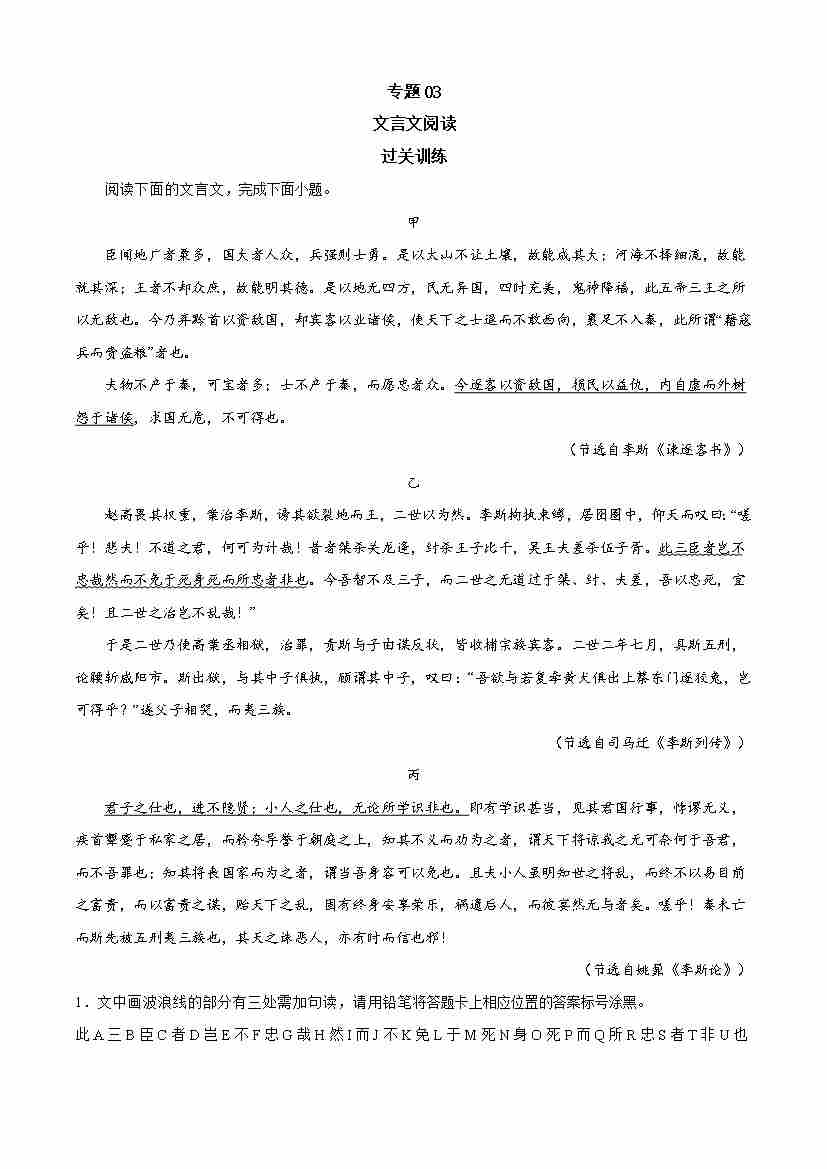 期末专题03 文言文阅读(过关训练)-高一语文下学期期中期(统编版必修下册)学生版