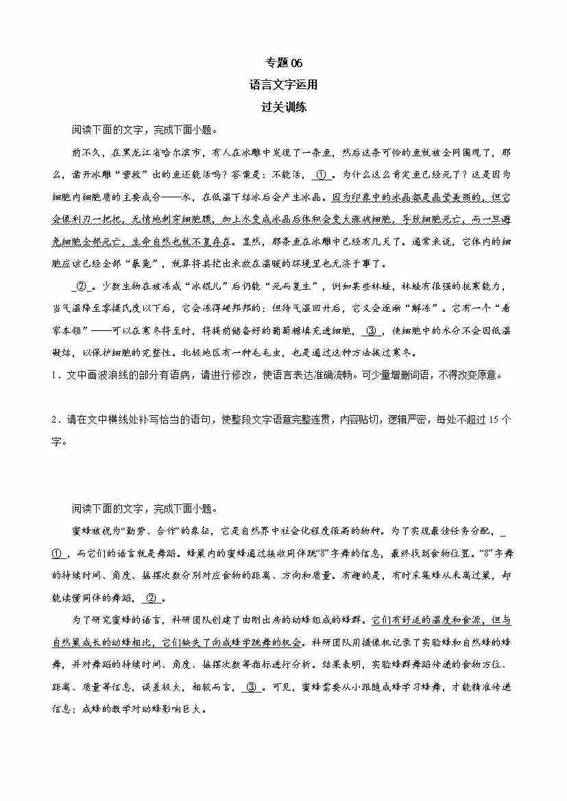 期末专题06 语言文字运用(过关训练)-高一语文下学期期中期(统编版必修下册)学生版