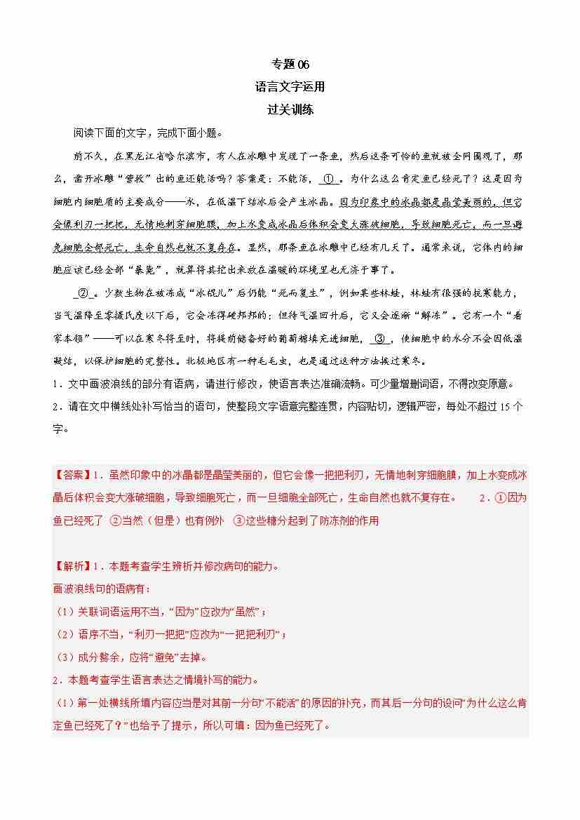 期末专题06 语言文字运用(过关训练)-高一语文下学期期中期(统编版必修下册)教师版