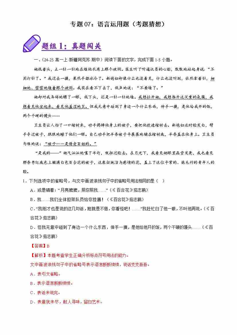 专题07:语言运用题(考题猜想)(教师版)