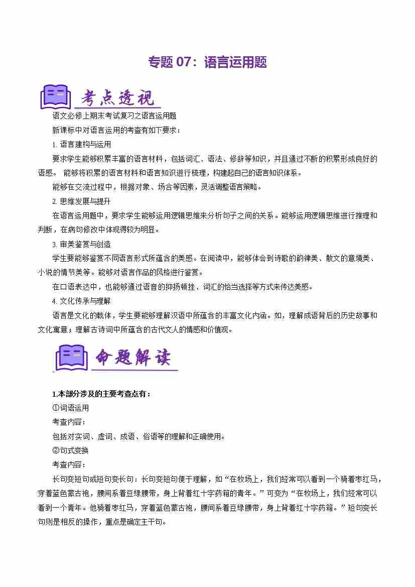 专题07:语言运用(考点清单)(学生版)