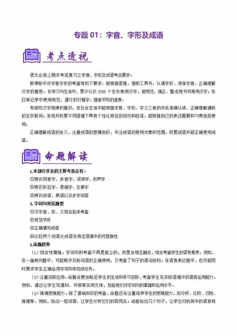 专题01:字音、字形及成语(考点清单)(学生版)