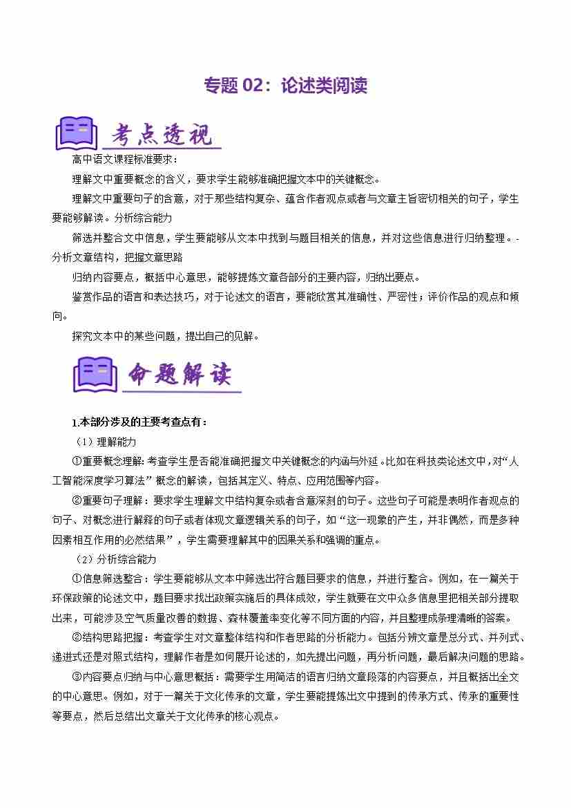 专题02:论述类阅读(考点清单)(学生版)
