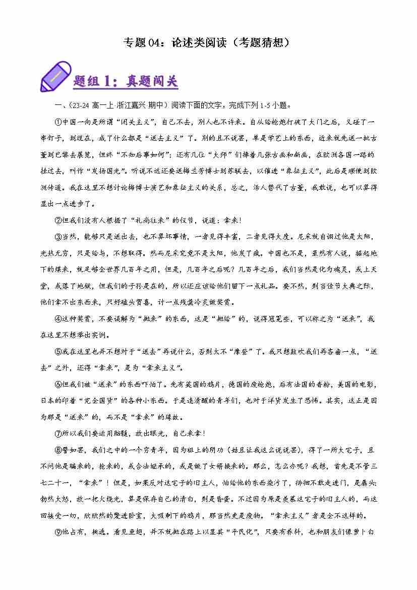 专题02:论述类阅读(考题猜想)(学生版)