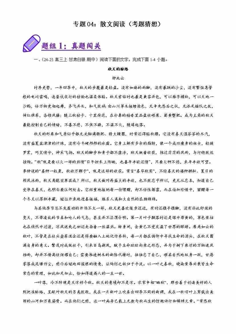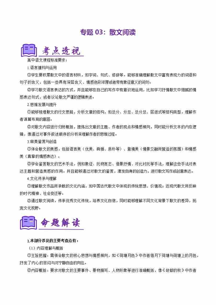 专题03:散文阅读(考题猜想)(学生版)