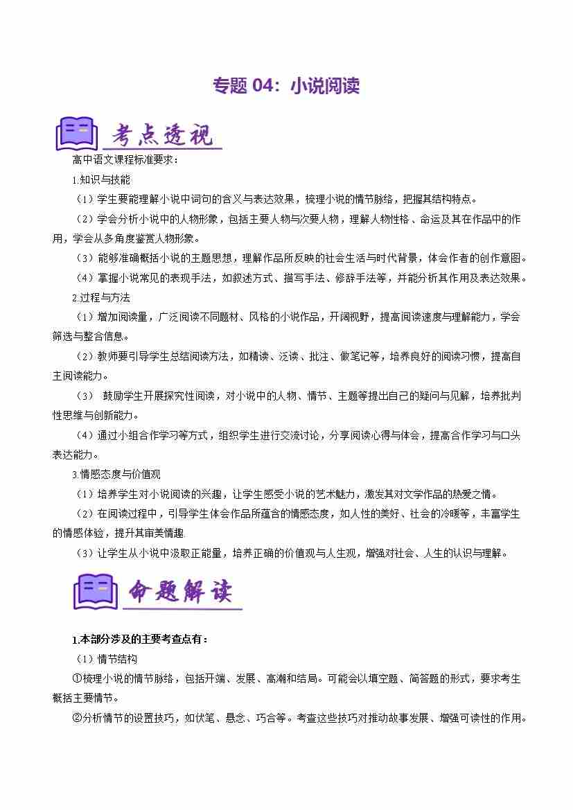 专题04:小说阅读(考点清单)(学生版)
