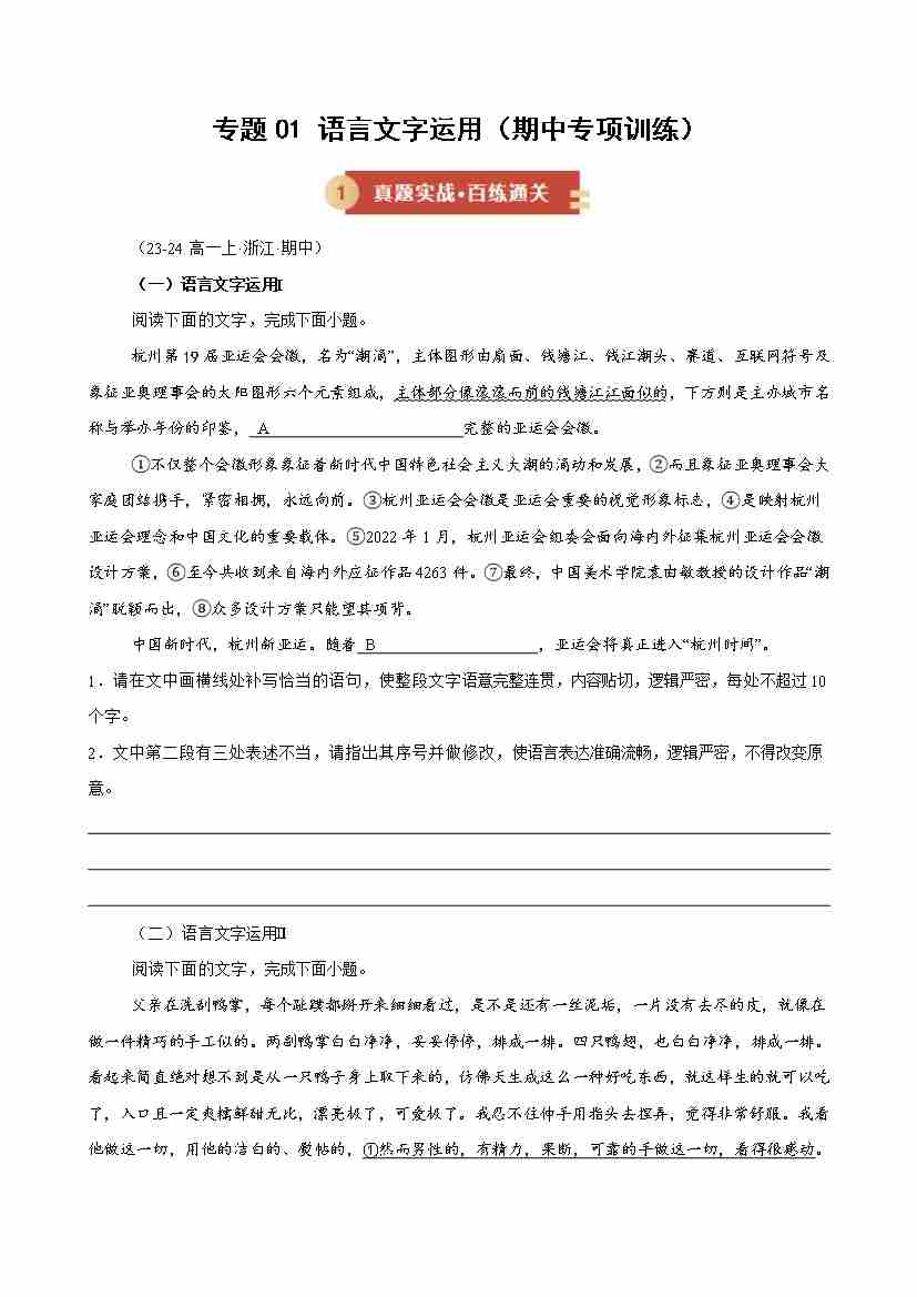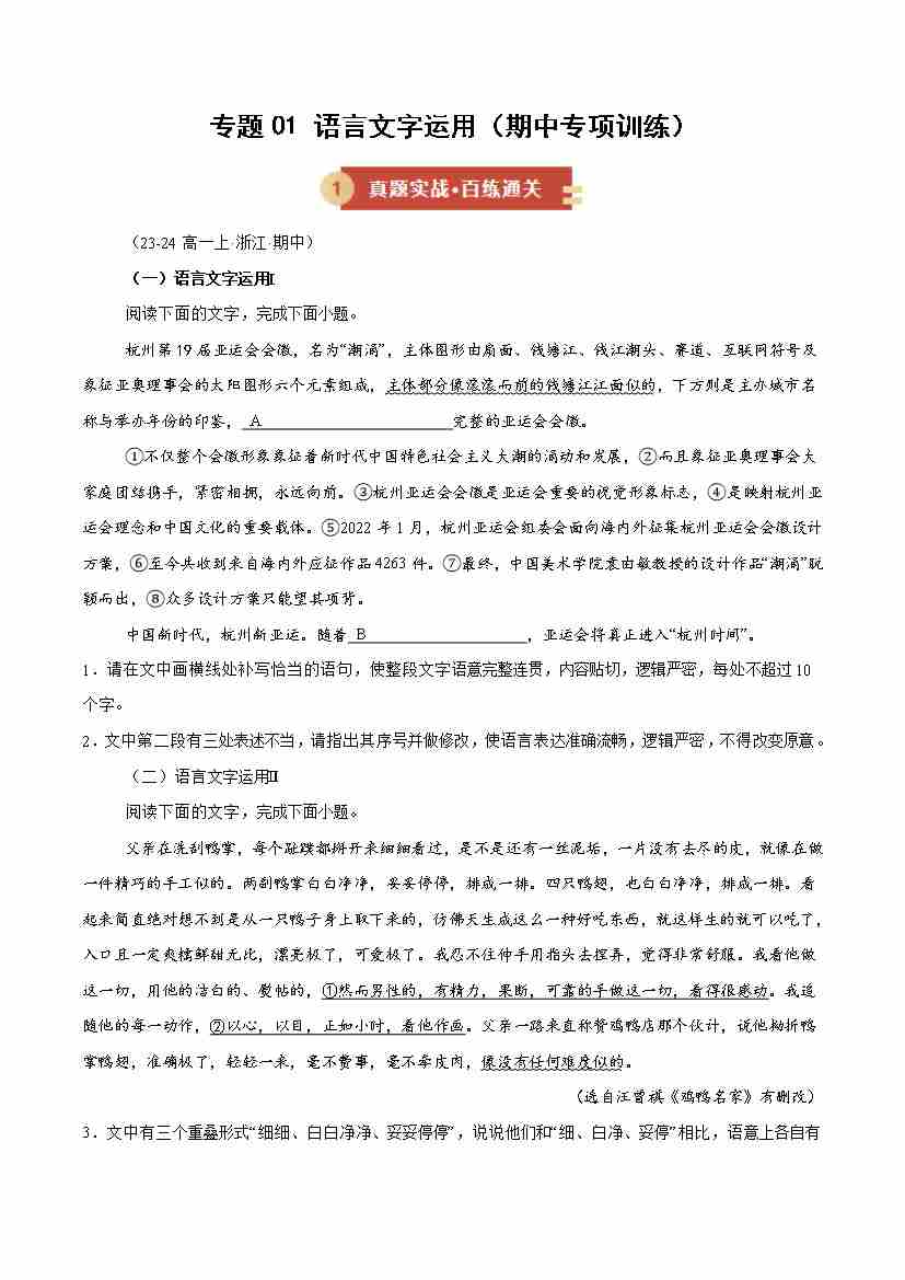 专题01 语言文字运用(期中专项训练)(学生版)