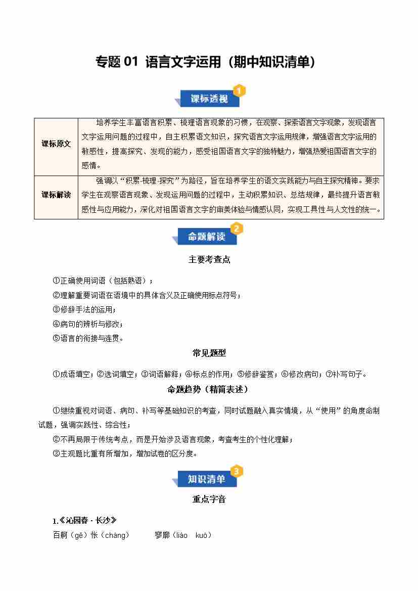 专题01 语言文字运用(期中知识清单)