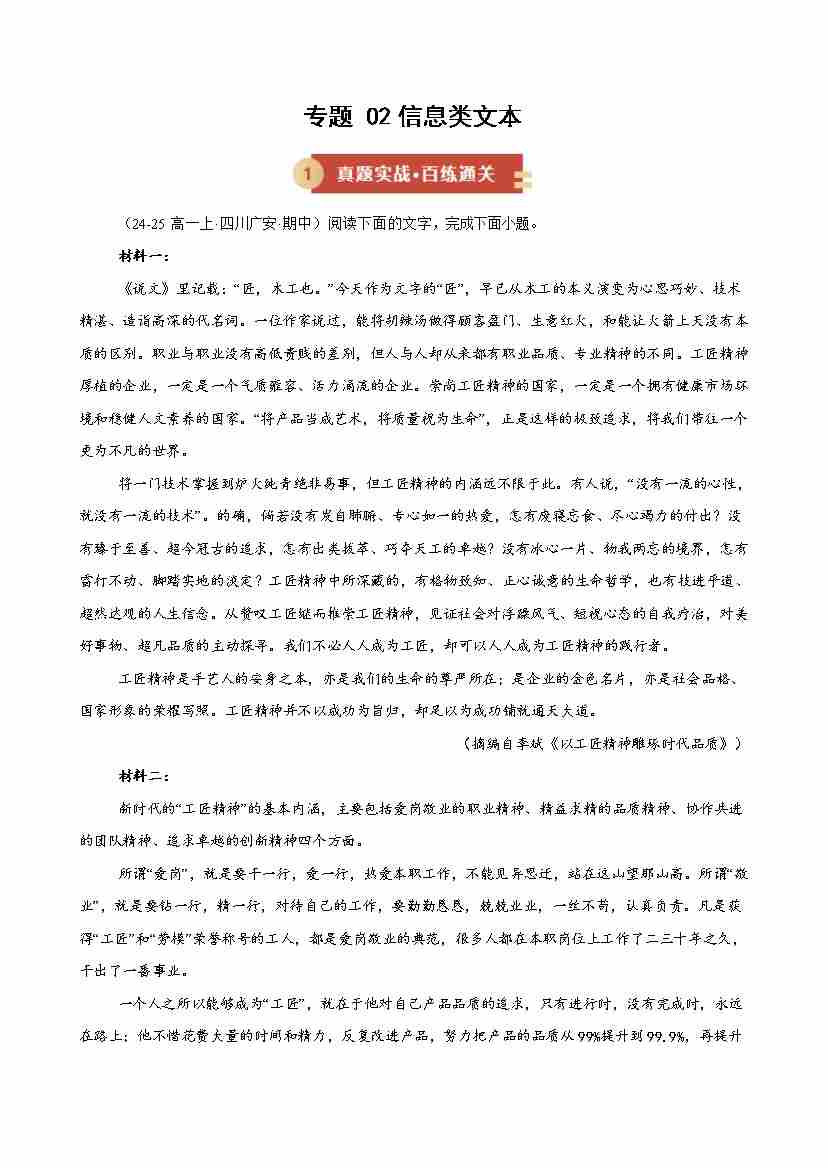 专题02 信息类文本(期中专项训练)(教师版)