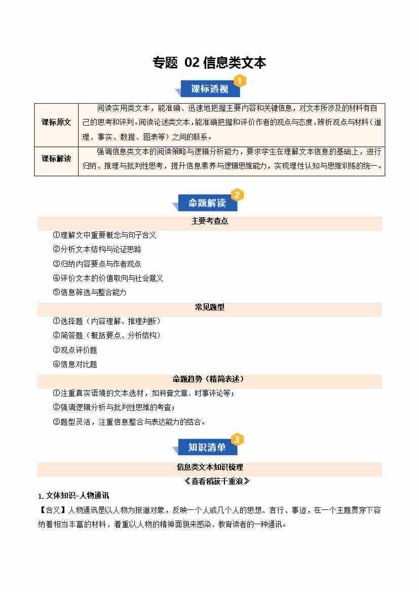专题02 信息类文本(期中复习讲义)(学生版)