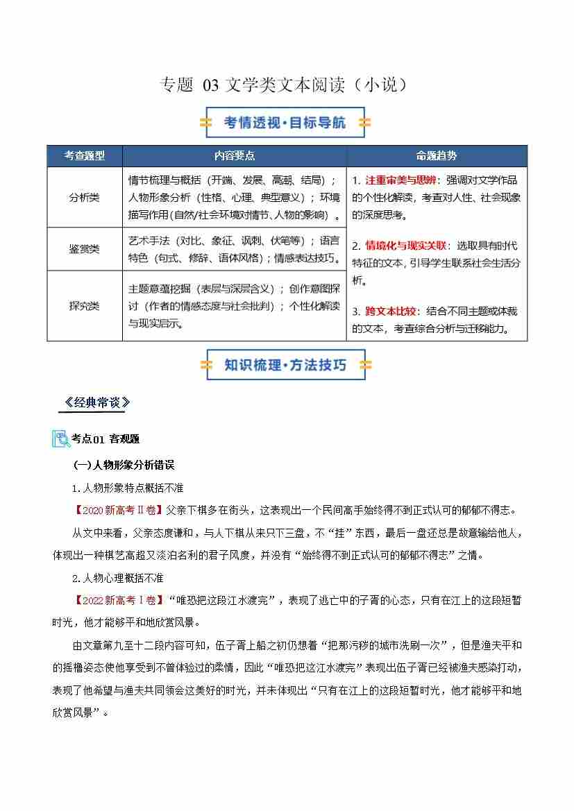 专题03 文学类文本阅读(小说)(期中复习讲义)(教师版)