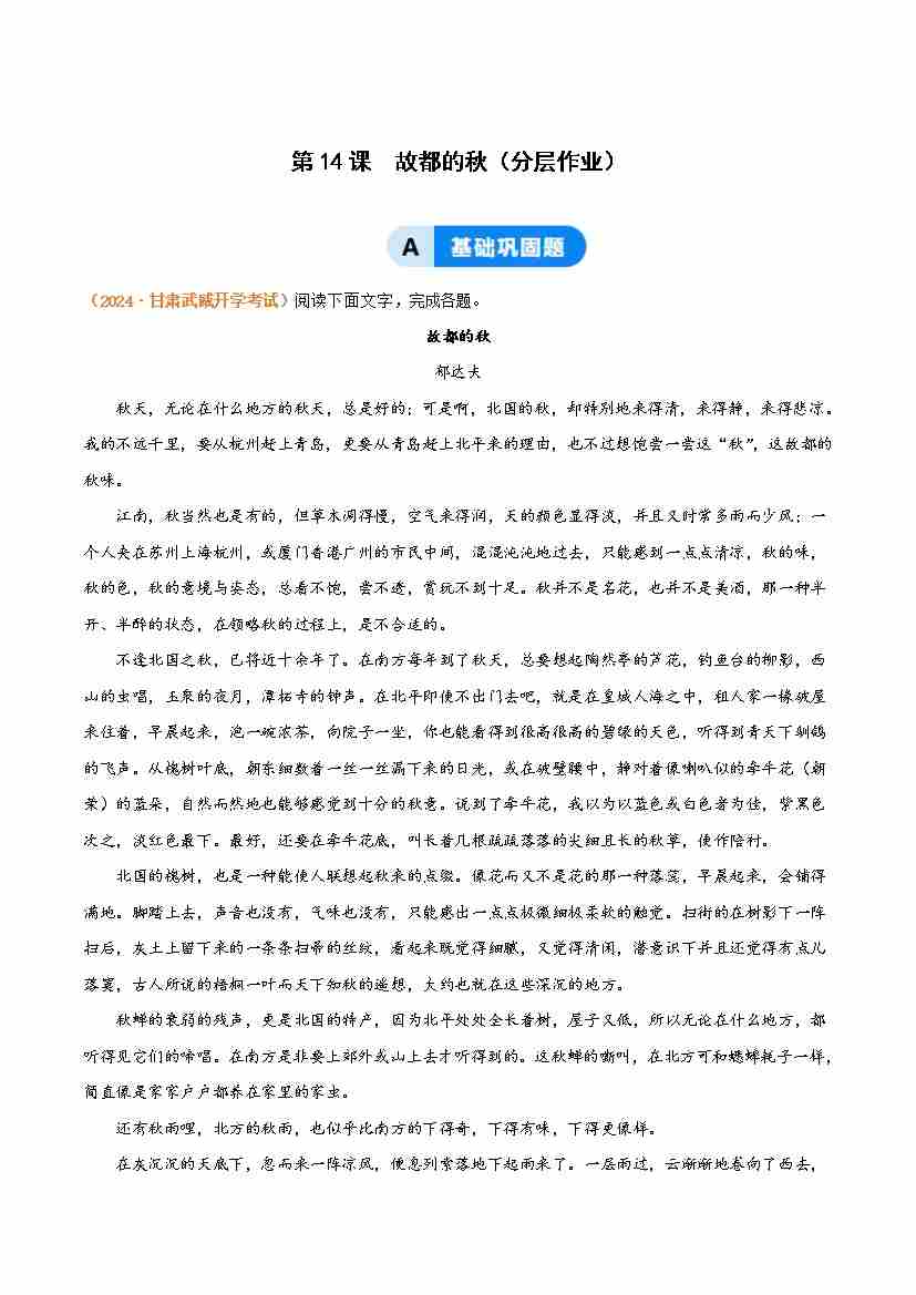 14-1 故都的秋(主题任务分层作业)(原卷版)