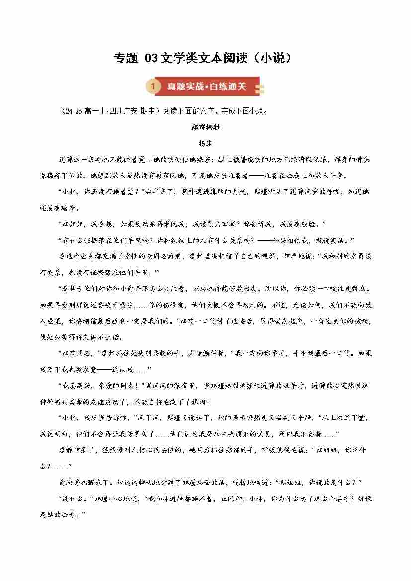 专题03 文学类文本阅读(小说)(期中专项训练)(学生版)